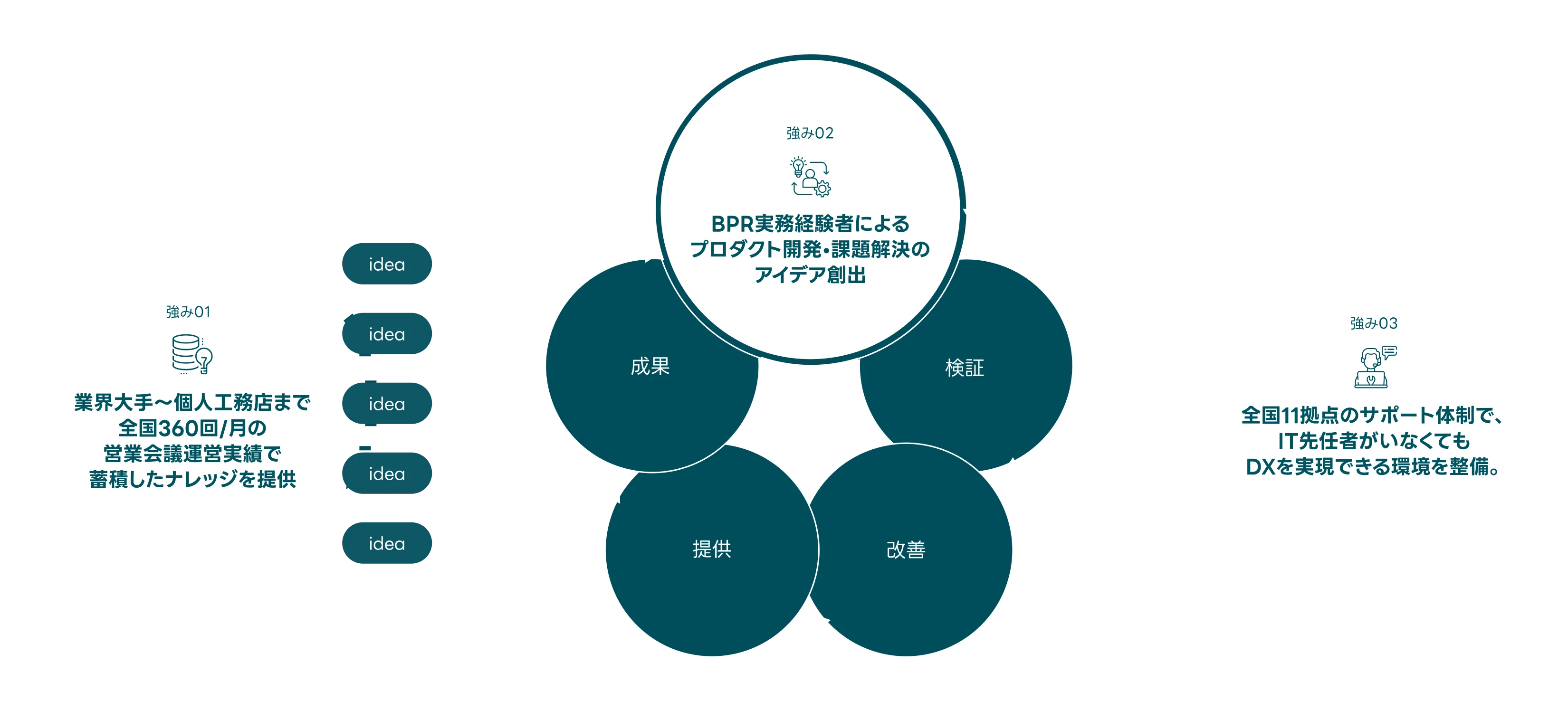 ①業界大手から個人工務店まで、全国360回/月の営業会議運営で多様なナレッジを蓄積。