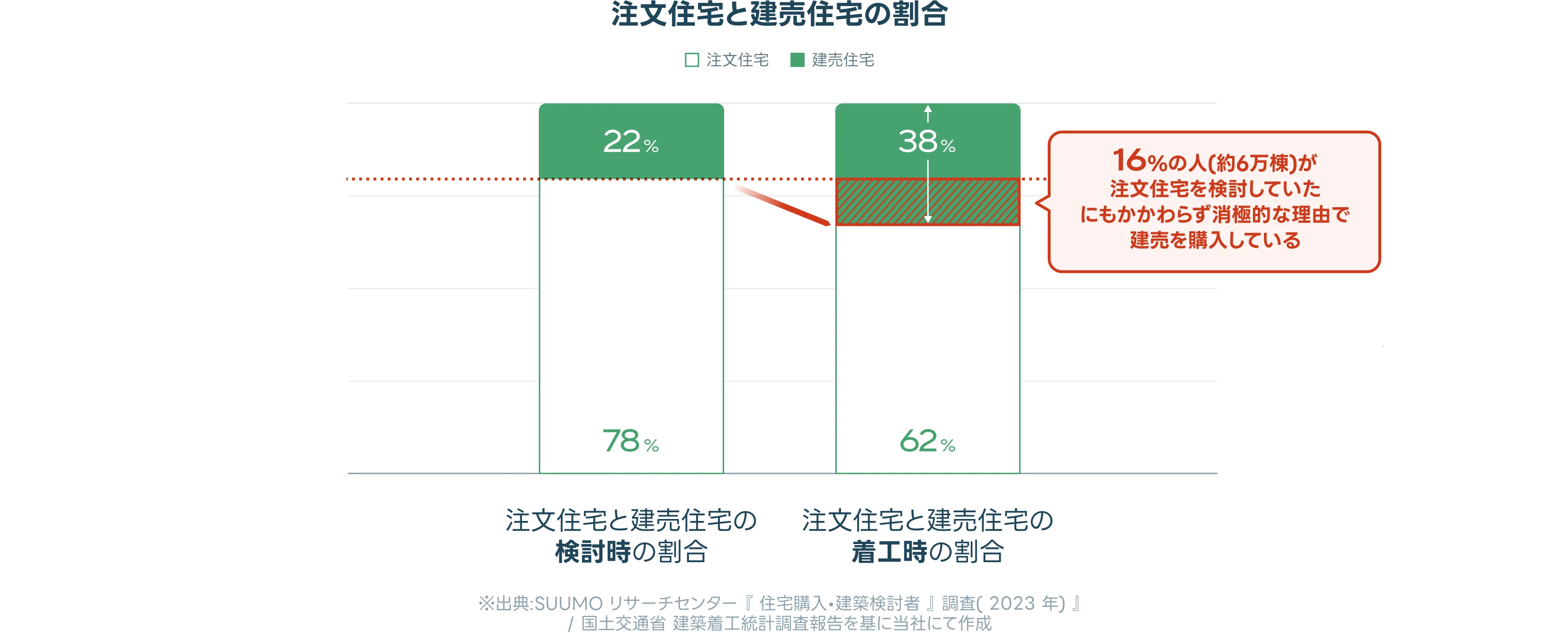 つまり、建売住宅を購入した層の中には、土地さえ見つかれば注文住宅で成約できた可能性があるということになります。