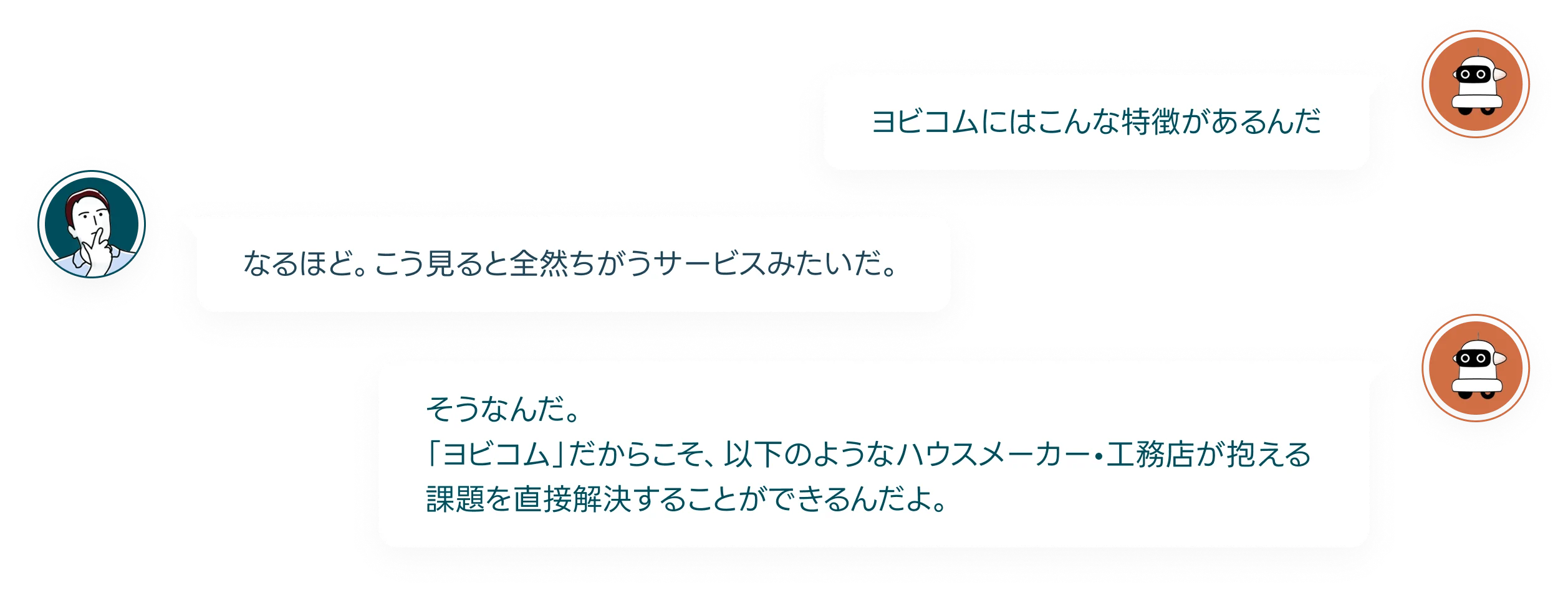 ハウスメーカー・ビルダーへの問い合わせ情報を自動でヨビコムの顧客管理ツールに自動で反映営業担当者の顧客管理やアポイント管理工数を削減できる
