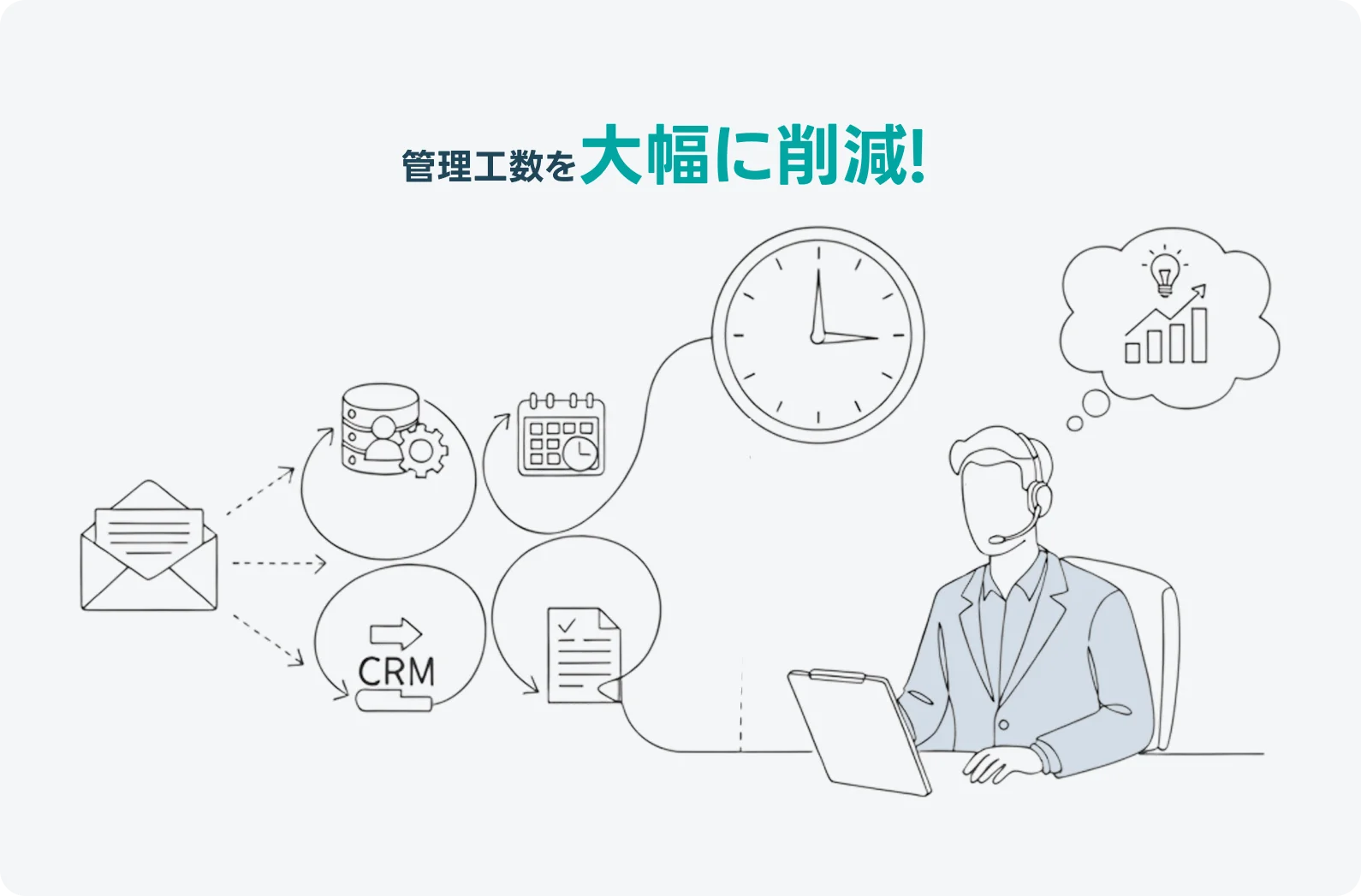問い合わせ対応は、情報の転記や履歴管理に手間がかかり、対応漏れやミスの原因に。ヨビコムなら、システム連携によってメールでの問い合わせ内容を自動で取り込み、即座に架電対応が可能。顧客情報の登録やアポイント管理の工数を大幅に削減し、ハウスメーカー・ビルダーの営業活動の効率化を実現します。
